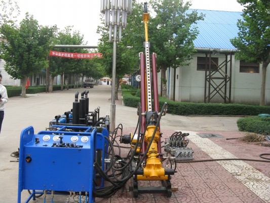 該機是全液壓小型便攜巖心鉆機,可以實現(xiàn)液壓驅(qū)動、液壓給進、液壓起拔等鉆進功能,其結(jié)構(gòu)新穎,體現(xiàn)輕巧,可以滿足一定轉(zhuǎn)速范圍的無級變速,以適應(yīng)不同工況的鉆進參數(shù)要求,主要適用于地表或坑道固定礦床的金剛石和硬質(zhì)合金鉆進工藝要求,實現(xiàn)鉆進過程的全程繩索取心要求,也可以用于工程地質(zhì)堪察、水文水井鉆孔、錨固、堤壩圍堰注漿和樁基孔等工程孔鉆進。