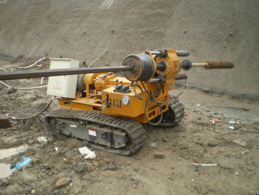 HXY-500履帶式錨桿鉆機(jī)是我公司根據(jù)近年來工程建設(shè)需要而專門生產(chǎn)的一種多功能鉆機(jī)。它是一種機(jī)械傳動(dòng)、液壓給進(jìn)、履帶行走專門用于工程錨桿施工的新型鉆機(jī),其工藝適應(yīng)性較強(qiáng),使用范圍廣,應(yīng)用于水文水井鉆進(jìn)、堤壩注漿、樁基孔工程鉆進(jìn),也可應(yīng)用于地表和坑道通風(fēng)、排水工程施工,對(duì)固體礦床進(jìn)行金鋼石鉆進(jìn)和硬質(zhì)合金鉆進(jìn)。預(yù)留卷揚(yáng)機(jī)安裝空間,以實(shí)現(xiàn)工程及地質(zhì)鉆進(jìn)的不同需要,動(dòng)力系統(tǒng)可根據(jù)用戶訂貨配備22千瓦電動(dòng)機(jī)或柴油機(jī)。(見外型圖1)