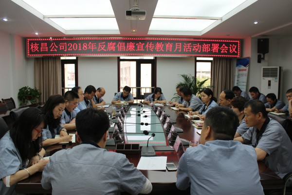2018年5月25日,為深入落實(shí)全面從嚴(yán)治黨,嚴(yán)守黨的規(guī)矩,增強(qiáng)黨員干部廉潔自律意識(shí),推動(dòng)公司監(jiān)察工作又好又快發(fā)展。核昌公司召開(kāi)2018年反腐倡廉宣傳教育月活動(dòng)部署會(huì)議。核昌公司領(lǐng)導(dǎo)...