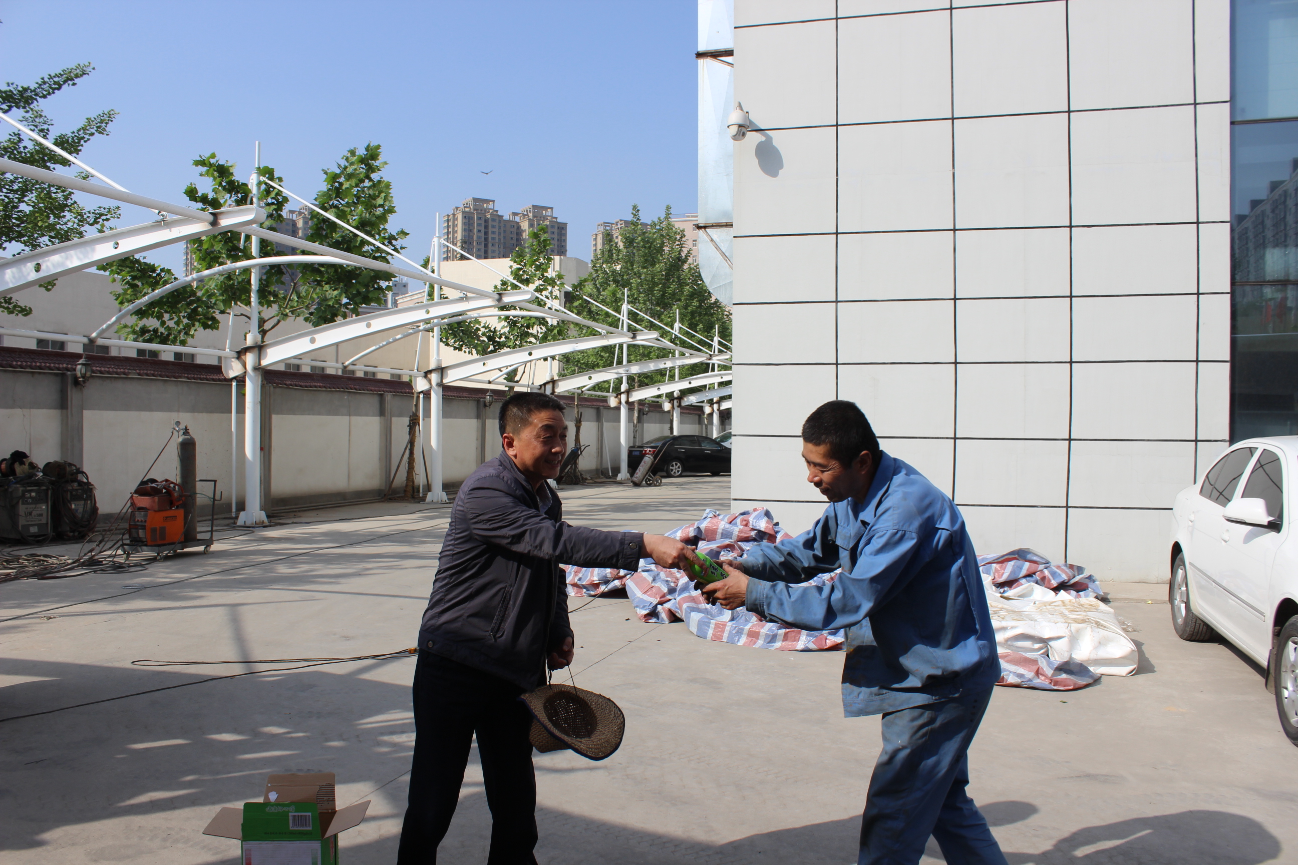 2016年4月28日,公司紀(jì)委書記、工會(huì)主席帶工會(huì)副主席李榮,一同前往市國資委膜棚制作項(xiàng)目施工現(xiàn)場進(jìn)行慰問。田書記對(duì)在高溫天氣仍然在室外 ...