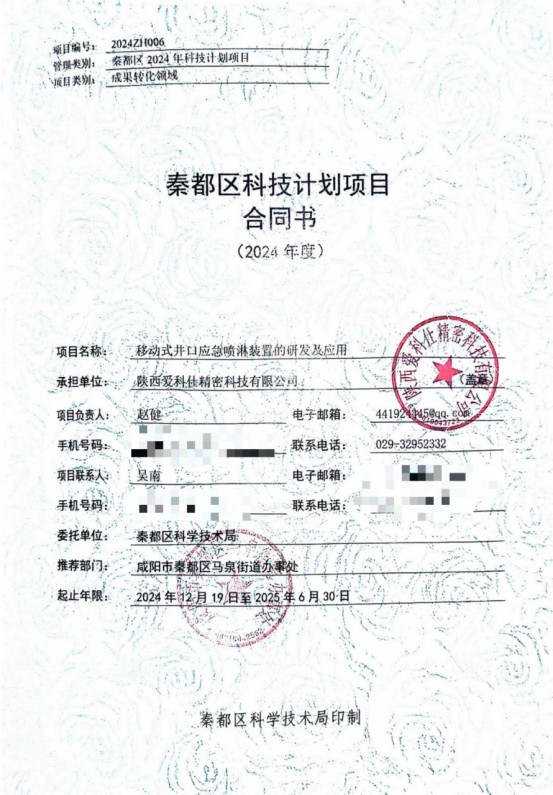 經(jīng)過公司科研團(tuán)隊的辛勤努力與積極申報,愛科仕公司移動式井口應(yīng)急噴淋裝置的研發(fā)及應(yīng)用成功獲批咸陽市秦都區(qū)2024年科技計劃項目,并獲得2024年秦都區(qū)科技計劃項目成果轉(zhuǎn)化類經(jīng)費補助...