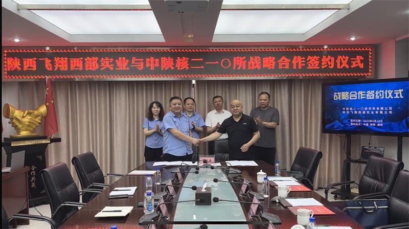 5月18日,陜西飛翔西部實業(yè)有限公司董事長白亞偉、總經(jīng)理程海東、常務(wù)副總張玉忠一行到中陜核集團二一〇研究所交流座談,并簽署戰(zhàn)略合作協(xié)議。二一〇研究所董事長王超宏、總經(jīng)理李偉、副總經(jīng)理楊艷和相關(guān)部門負責人出席座談會。