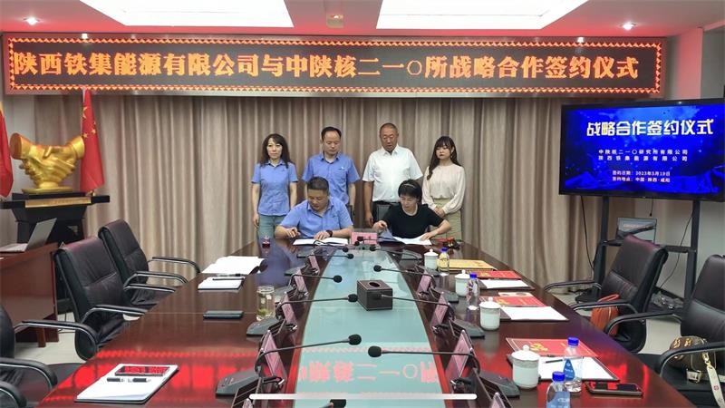 中陜核二一〇研究所總經(jīng)理李偉,陜西鐵集能源有限公司張敏分別代表雙方簽署戰(zhàn)略合作協(xié)議。