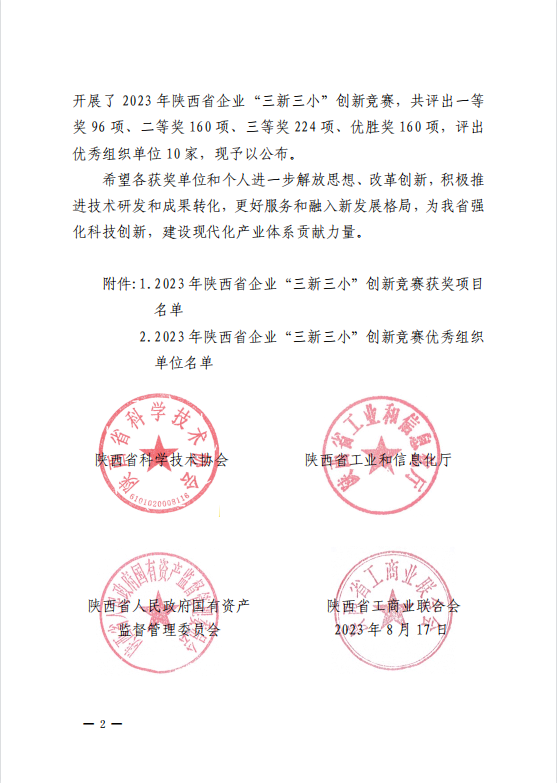“三新三小”主要指企業(yè)經營活動中的“新技術、新工藝、新材料”和“小發(fā)明、小創(chuàng)新、小改造”?!叭氯 眲?chuàng)新競賽由陜西省科學技術協(xié)會、陜西省工業(yè)和信息化廳、陜西省人民政府國有資產監(jiān)督管理委員會、陜西省工商業(yè)聯合會共同主辦,是圍繞產業(yè)鏈部署創(chuàng)新鏈、圍繞創(chuàng)新鏈布局產業(yè)鏈,引導企業(yè)弘揚創(chuàng)新文化、營造創(chuàng)新氛圍、傳播創(chuàng)新方法、激發(fā)創(chuàng)新熱情的省級創(chuàng)新競賽活動,且競賽項目必須是已經在企業(yè)中實現全落地、有效運行一年以上、取得一定社會經濟效益的創(chuàng)新成果。