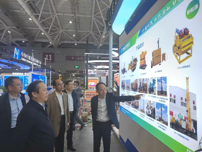 展會上,公司黨委書記、董事長王超宏向集團公司一行領導及觀展人員詳細介紹了參展設備的性能、主要特點及適用范圍。參展的HXY系列拖車鉆機組是專門針對砂巖鈾礦地質(zhì)勘探和開采孔研制的升級產(chǎn)品,在人機協(xié)調(diào)、安全性、操控性能上得到了充分提高,杜絕了全液壓巖心鉆機功耗大、維修要求高的缺點,能夠滿足繩索取心的工藝要求。與國內(nèi)外同類鉆機相比,在進尺速度、上下鉆速度、孔底壓力控制、鉆進參數(shù)顯示和控制方面具有顯著的特點。目前,該系列產(chǎn)品已廣泛應用于核工業(yè)203所、核工業(yè)243大隊、核工業(yè)208大隊等野外施工。