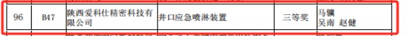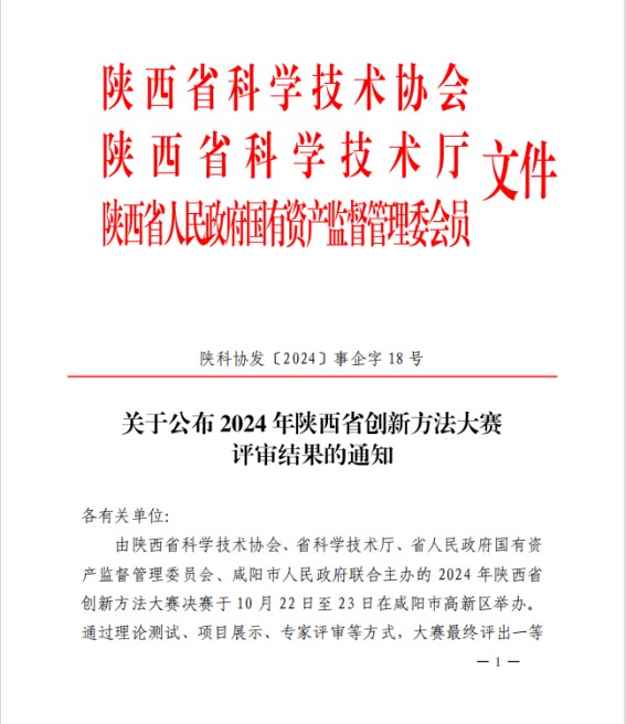 日前,陜西省科協(xié)公布2024年陜西省創(chuàng)新方法大賽評審結(jié)果,陜西愛科仕精密科技有限公司的“井口應(yīng)急噴淋裝置”項(xiàng)目在此次大賽中榮獲三等獎(jiǎng)。