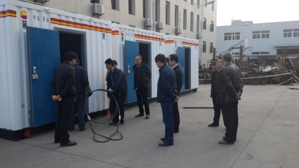 驗(yàn)收中,趙總經(jīng)理等人對此項(xiàng)目的工作給予充分的肯定,并提出了吊索房吊索擺放,按統(tǒng)一標(biāo)準(zhǔn)執(zhí)行,吊索擺放到位后需可靠固定,防止運(yùn)輸過程中滑落;CSG除砂罐排酸桶需增加卡箱固定,罐面上設(shè)計(jì)一個工具箱用于存放銷子等小零件和工具等改進(jìn)建議,王超宏總經(jīng)理對趙總等人在驗(yàn)收中提出的建議表示堅(jiān)決按改進(jìn)意見實(shí)施,并對兩公司后期的合作充滿信心。