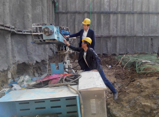 4月7日上午,公司總經(jīng)理王超宏在總經(jīng)理助理、綜合部部長劉彥仁的陪同下,親臨北京某房建施工現(xiàn)場,看望現(xiàn)場負責新產(chǎn)品HMD-7500全液壓錨固鉆機工業(yè)性試驗的同志,并對鉆機的試驗情況進行了調(diào)研。