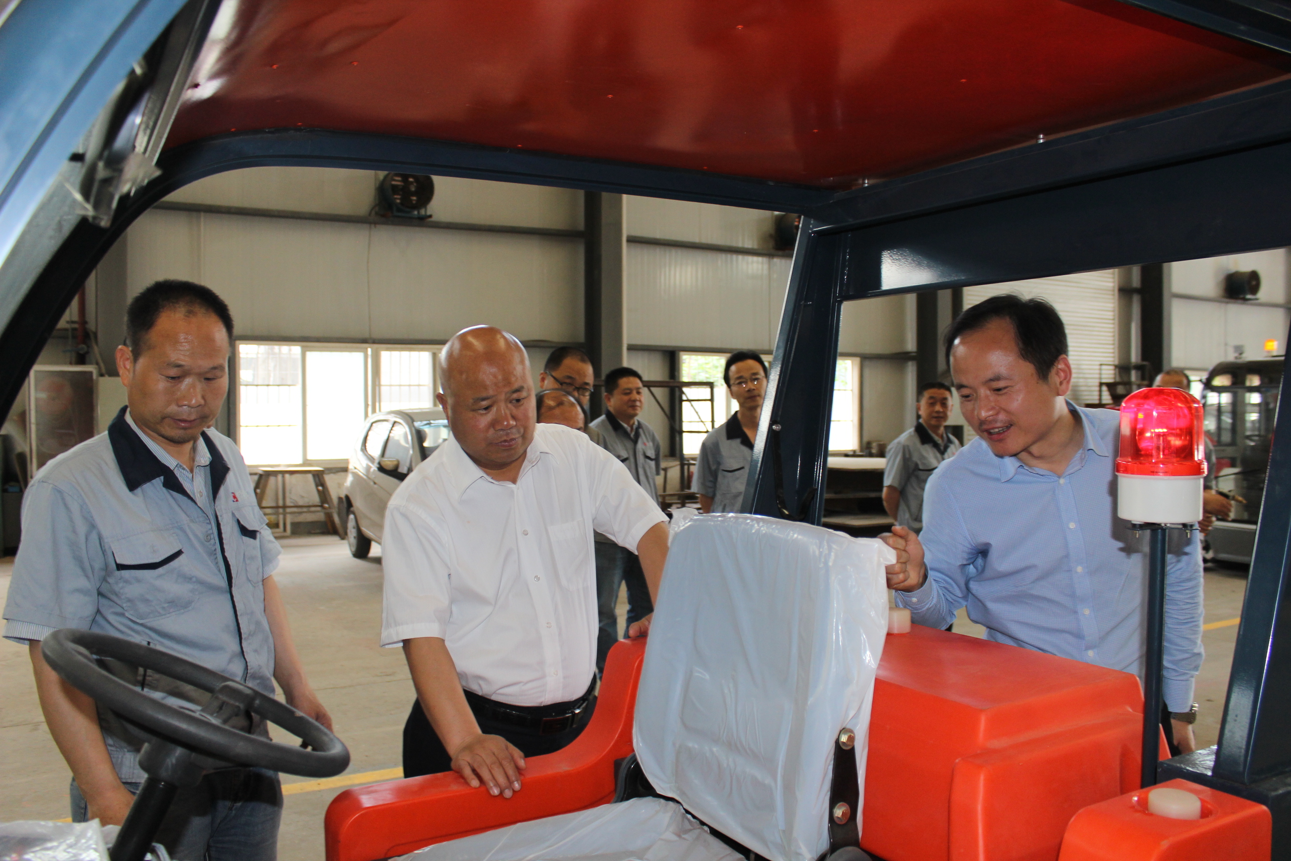高利鵬副總首先在核昌公司總經(jīng)理王超宏等人的陪同下,視察了清掃車生產(chǎn)現(xiàn)場,尤其對近期研發(fā)的新型清掃車相關(guān)性能及生產(chǎn)情況進行了詳細(xì)的詢問。