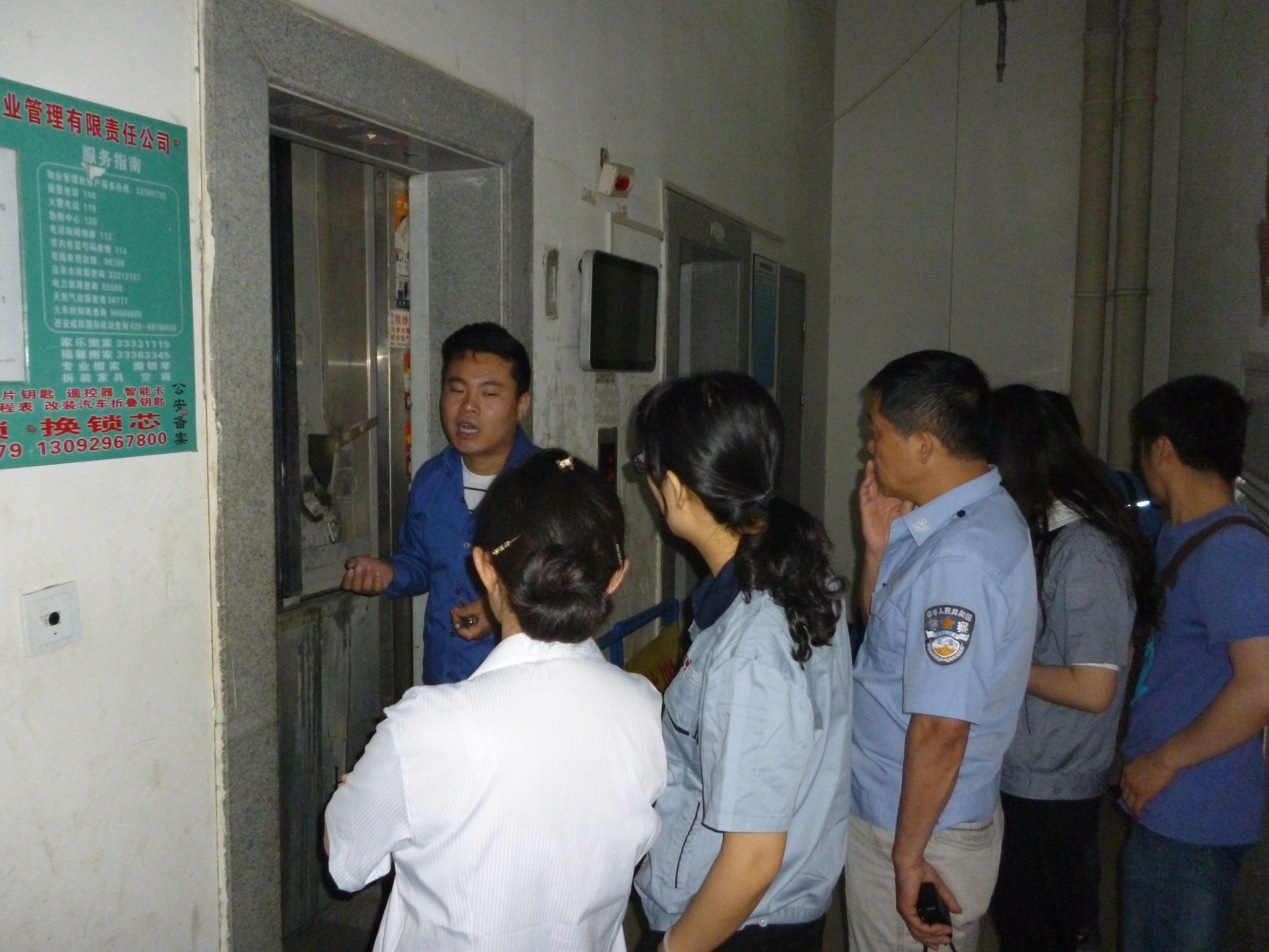 上午8時30分,小區(qū)海城大廈電梯突然出現(xiàn)斷電故障,電梯被迫停運,3名乘客被困電梯里。此險情出現(xiàn)后,被困業(yè)主立即通過電梯內(nèi)應(yīng)急設(shè)備向物業(yè)公司報告并請求救援,物業(yè)公司接到報告請求后,快速反映,立即啟動應(yīng)急救援預(yù)案。物業(yè)人員于8時32分趕到現(xiàn)場并馬上對被困轎箱的乘客進(jìn)行安撫,讓他們保持鎮(zhèn)靜,耐心等待維修人員的救援。電梯維修人員趕到現(xiàn)場,按救援步驟,首先關(guān)閉了機(jī)房電源開關(guān),隨后用層門鎖鑰匙人力慢慢開啟轎門,協(xié)助乘客離開轎廂。被困人員離開后,物業(yè)公司人員與電梯維保人員立即對此次電梯困人事故進(jìn)行分析,并就日常出現(xiàn)的一些問題進(jìn)行了探討。至此,演練圓滿結(jié)束。