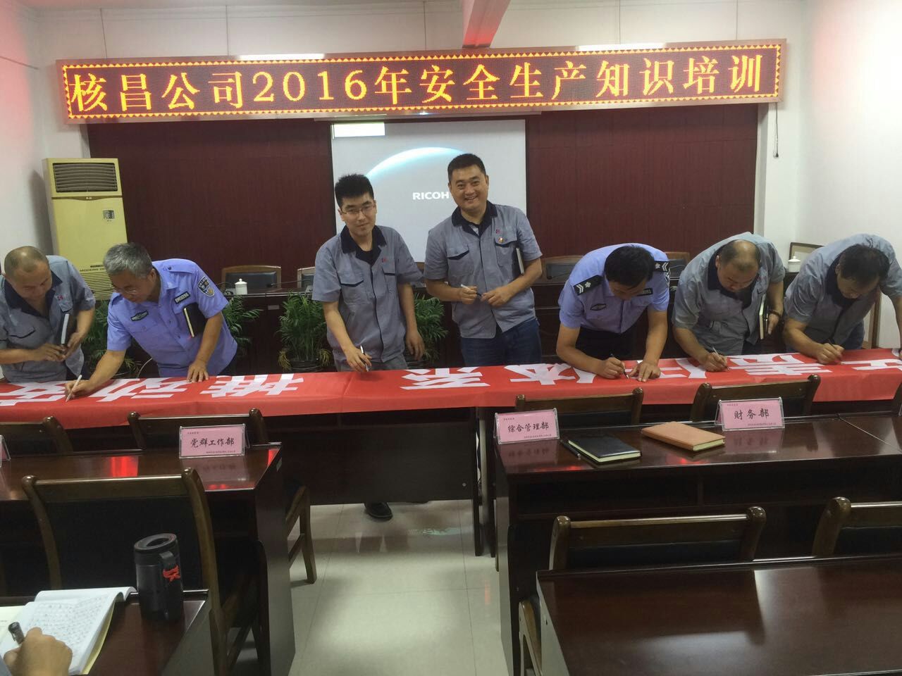 培訓(xùn)期間,每個參培人員均嚴格遵守學習紀律、認真學習、認真筆記、積極互動、認真總結(jié)反思。經(jīng)過兩個小時緊張而充實的學習,使大家充分認識到安全工作的重要性,為施工生產(chǎn)提供了堅實的安全保障,并牢固樹立了“安全第一、預(yù)防為主、綜合治理”的思想。為了營造人人講安全,人人重安全,人人保安全的和諧氛圍,在會后舉行了安全生產(chǎn)宣誓簽字活動,對核昌公司安全生產(chǎn)產(chǎn)生了積極的影響,并將安全生產(chǎn)月活動推向高潮。