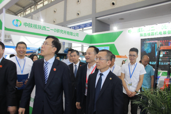 展會期間,陜西省省長劉國中、陜西省副省長魏增軍分別蒞臨曲江國際會展中心,對第三屆絲博會開展情況進行考察,參觀B1展館時,核昌公司董事長王超宏熱情的向省長劉國中、副省長魏增軍介紹了參展產(chǎn)品和公司發(fā)展狀況,省長劉國中、副省長魏增軍均表示要繼續(xù)努力,把新能源產(chǎn)業(yè)做強做大,為陜西新能源和環(huán)保事業(yè)的發(fā)展做出更大貢獻。
