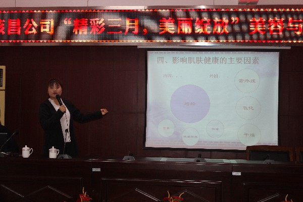 活動中,核昌工會特邀請兩位養(yǎng)生顧問結合PPT,用通俗易懂的語言,給大家講授了基礎皮膚的護理、五臟六腑的病理變化以及女性心理變化的美容與養(yǎng)生健康知識。女職工們紛紛與兩位顧問還進行了現(xiàn)場互動交流,結合自身情況向顧問進行咨詢,充分調(diào)動了女職工的積極性,現(xiàn)場氣氛活躍。講座結束后,核昌工會為女職工精心準備了節(jié)日禮物,以鼓勵女職工在今后的生活工作中更加努力向上、美麗健康。