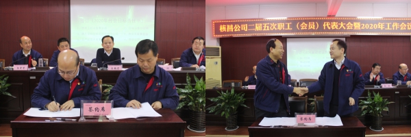 接下來會議轉(zhuǎn)為2020年工作會。首先由工會主席李偉傳達(dá)了集團(tuán)公司2020年職代會、工作會議精神及集團(tuán)公司董事長張斌成講話精神。其次,黨委委員、副總經(jīng)理張琳對2019年公司經(jīng)營考核結(jié)果進(jìn)行了通報,紀(jì)委書記任中賢宣讀了《2019年先進(jìn)集體和個人表彰決定》,公司領(lǐng)導(dǎo)對獲得先進(jìn)的集體和個人進(jìn)行頒獎。黨委副書記、總經(jīng)理楊昭與各事業(yè)部負(fù)責(zé)人簽訂了《2020年經(jīng)營目標(biāo)責(zé)任書》,黨委書記王超宏分別與各黨支部書記簽訂《黨風(fēng)廉政建設(shè)責(zé)任書》,與公司工會簽訂了《工資集體協(xié)商協(xié)議書》、《女職工特殊權(quán)益保護(hù)專項合同》。隨后,對中層干部進(jìn)行了民主測評。