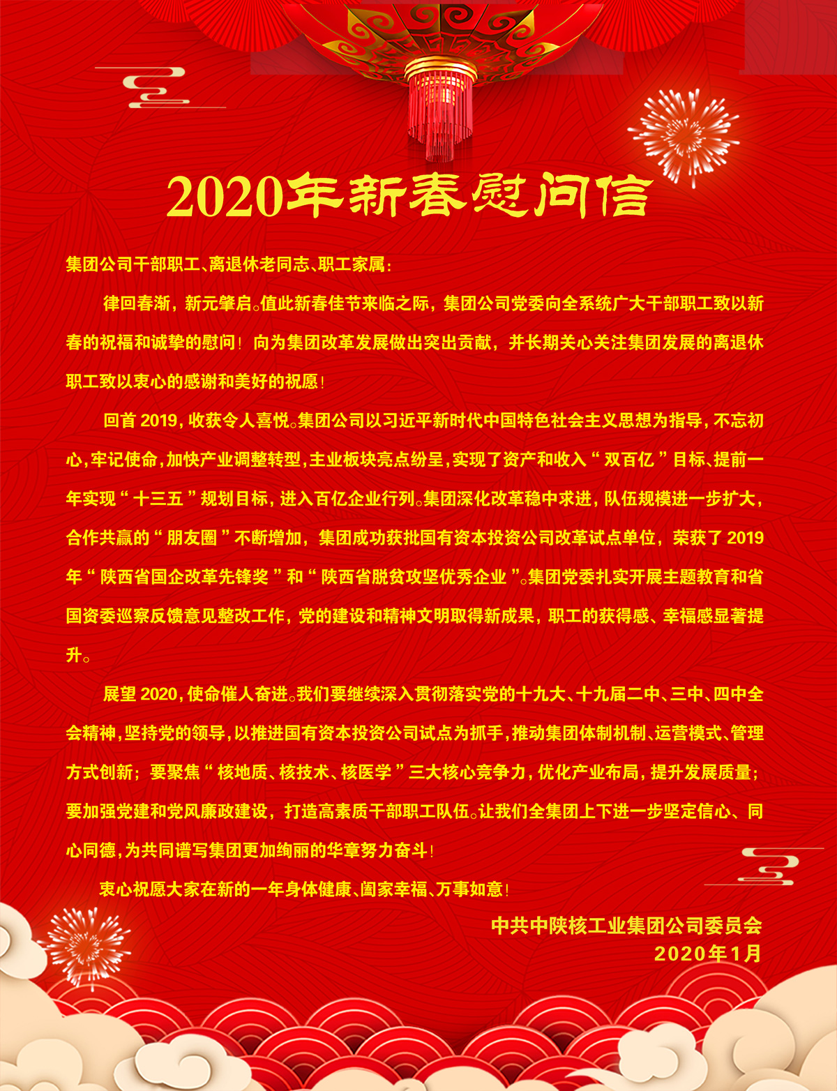 中陜核工業(yè)集團(tuán)2020年新春慰問(wèn)信