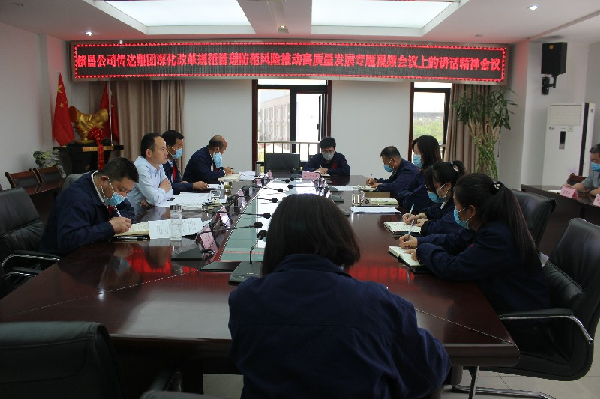 最后,黨委副書記、總經(jīng)理楊昭傳達(dá)了集團(tuán)公司黨委書記、董事長張斌成在集團(tuán)深化改革規(guī)范管理防范風(fēng)險推動高質(zhì)量發(fā)展專題視頻會議上的講話精神。結(jié)合公司生產(chǎn)經(jīng)營實際情況,從提高站位、突出重點、規(guī)范管理、精準(zhǔn)施策四方面進(jìn)行解讀。