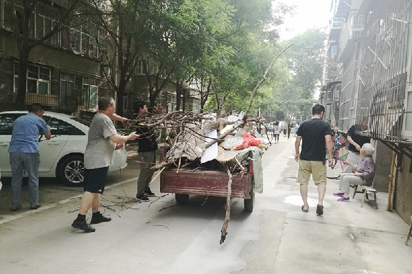 物業(yè)全體工作人員明確任務(wù)、分工合作,充分發(fā)揚(yáng)不怕臟、不怕累的精神,拿起掃把、鏟子對(duì)小區(qū)衛(wèi)生死角進(jìn)行仔細(xì)清掃,他們?nèi)宄扇?,除雜草、撿垃圾、掃落葉、清理樓道雜物,干的熱火朝天,汗流浹背,大掃除活動(dòng)井然有序的開展。