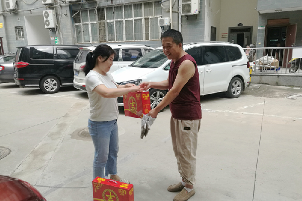 炎炎夏日送清涼,絲絲關愛入心田。一份清涼,一份關懷,一份愛心,在這個一年中最熱的時候,物業(yè)公司經理劉亞紅帶著防暑降溫用品,慰問面對連續(xù)高溫,身處物業(yè)一線的全體員工,送去了公司對一線員工的深深關愛之情。