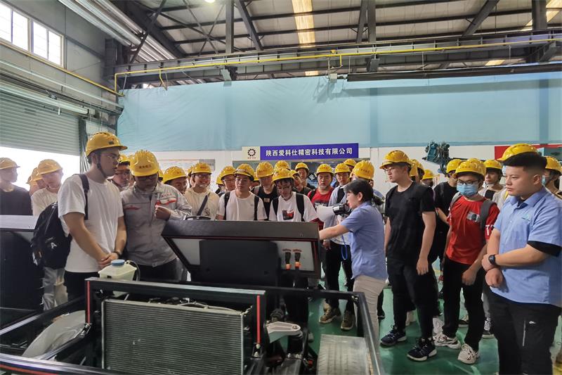 參觀期間,二一〇研究所技術(shù)人員現(xiàn)場講解了近年來研發(fā)生產(chǎn)的HXY-1600型智能拖車鉆機組、NCT-10泥漿不落地裝置、新能源清掃設(shè)備、精密主軸等各產(chǎn)業(yè)版塊的主營產(chǎn)品。學生們駐足聆聽、熱情高漲,積極對產(chǎn)品的研發(fā)技術(shù)、生產(chǎn)流程及加工工藝進行提問,并得到了相關(guān)技術(shù)人員的耐心解答。